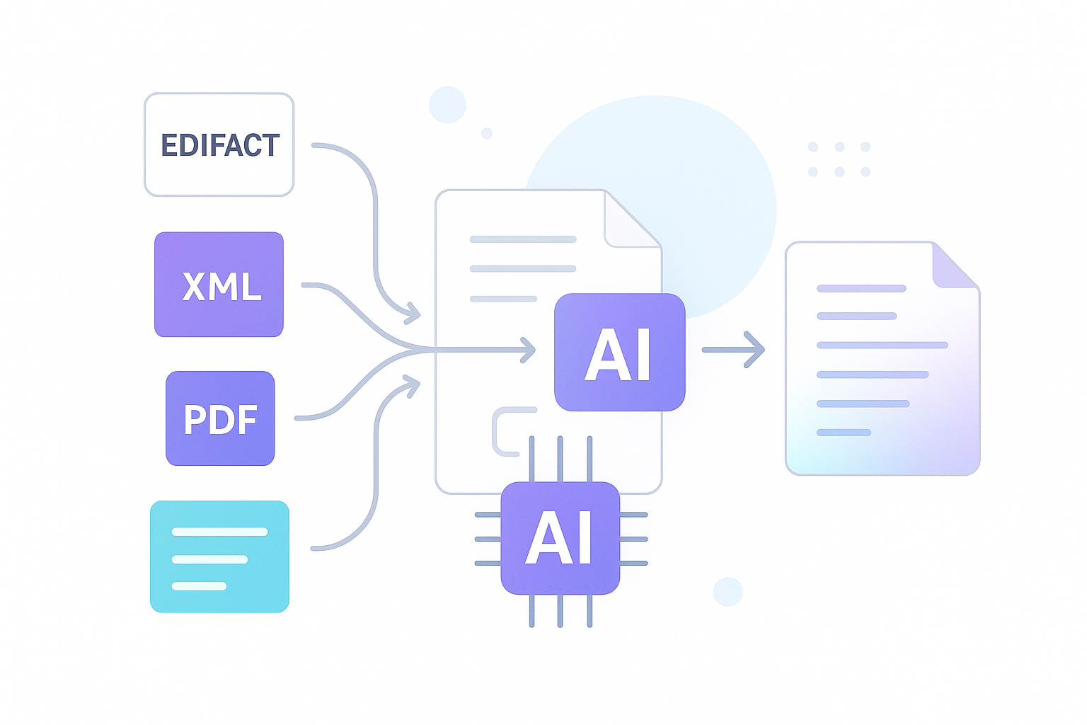 Digest any format — EDIFACT, XML, PDFs, even bulk scans — and process it intelligently
