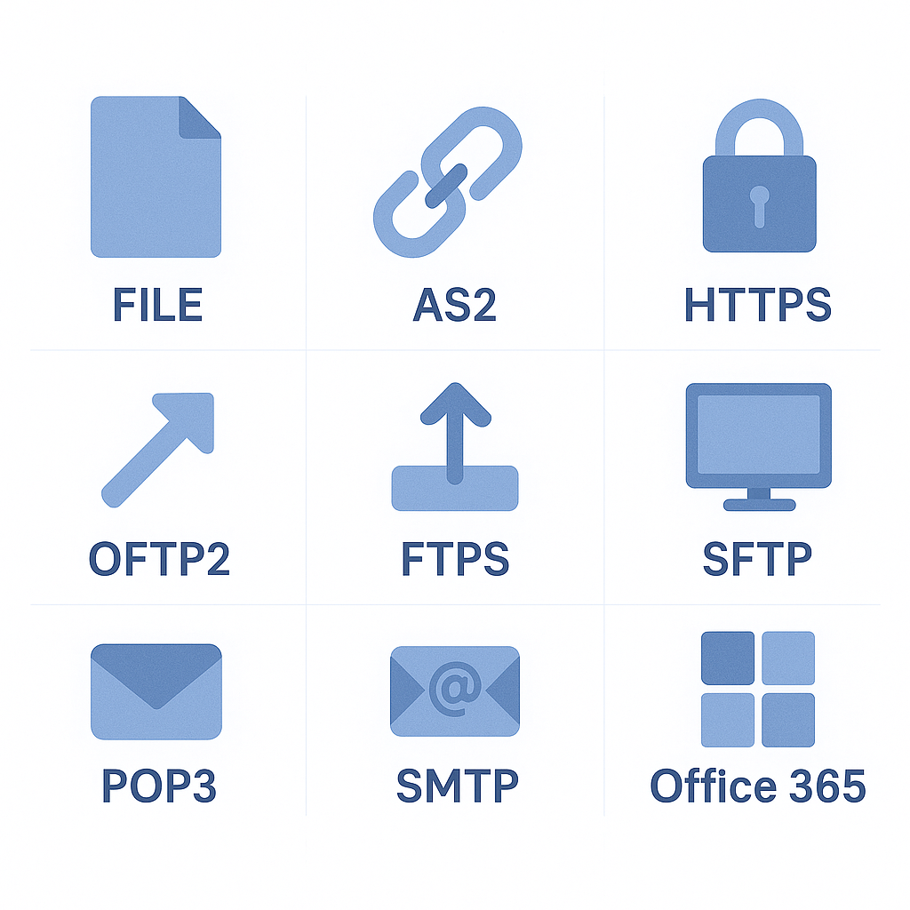 Connect EDI partners using proven transport options like AS2 and OFTP2